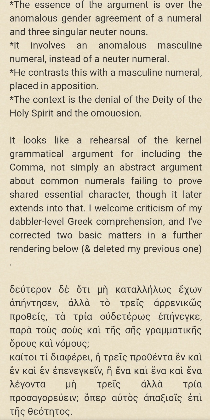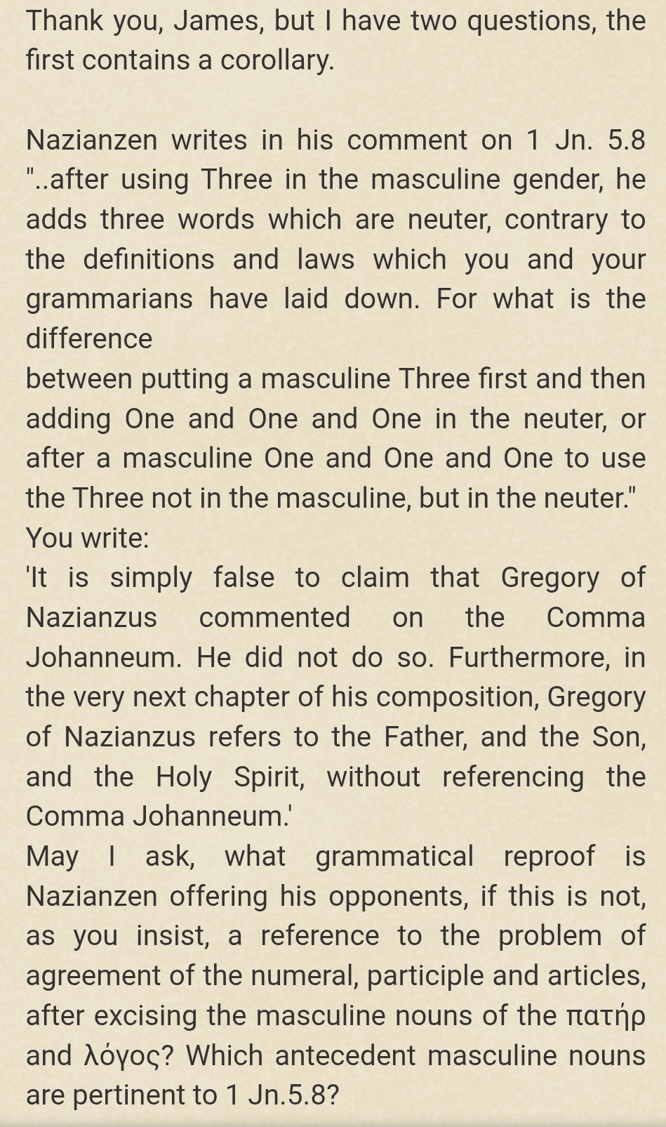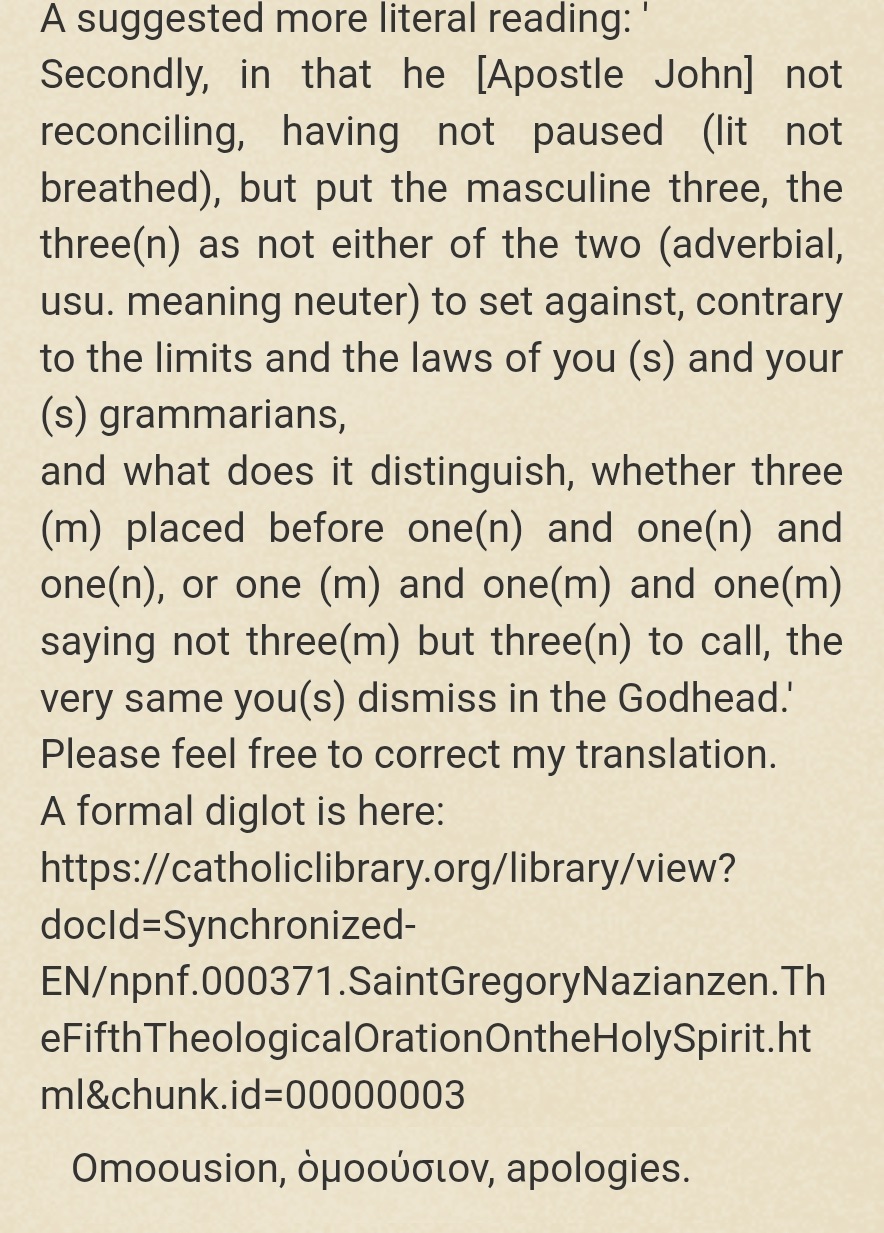 Nazianzen on 1 John 5.7-8 and the Grammatical Argument